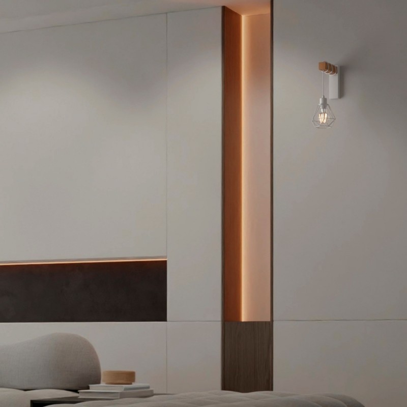 L'applique murale "RODEN" fusionne la chaleur du bois massif avec la modernité du métal dans un design géométrique qui capture l'essence du style nordique. Sa structure en fil de fer crée un jeu fascinant de lumières et d'ombres, transformant n'importe quel espace en un environnement chaleureux et sophistiqué.