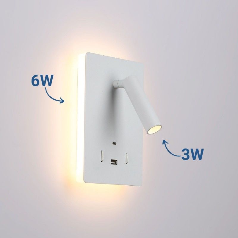 Applique murale "CLAUDI" - 3W + 12W - 2700K - USB+USB-C