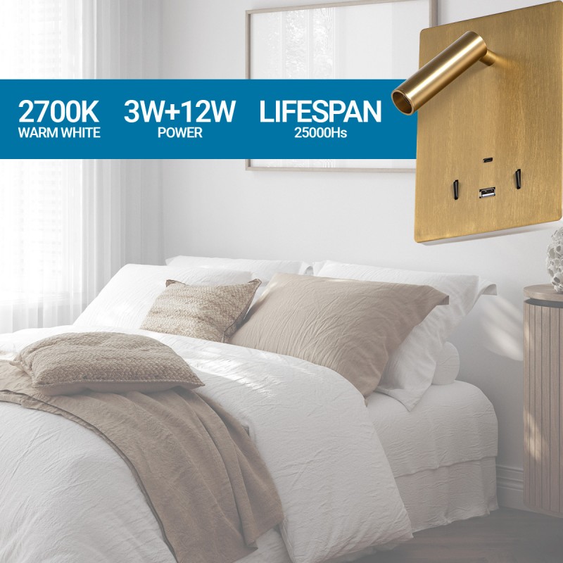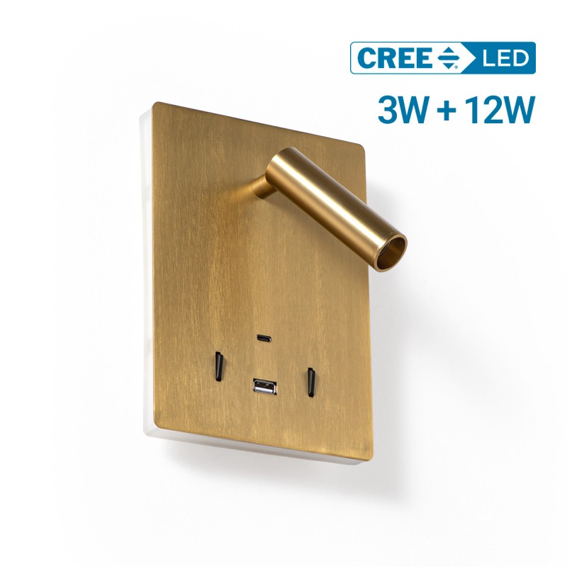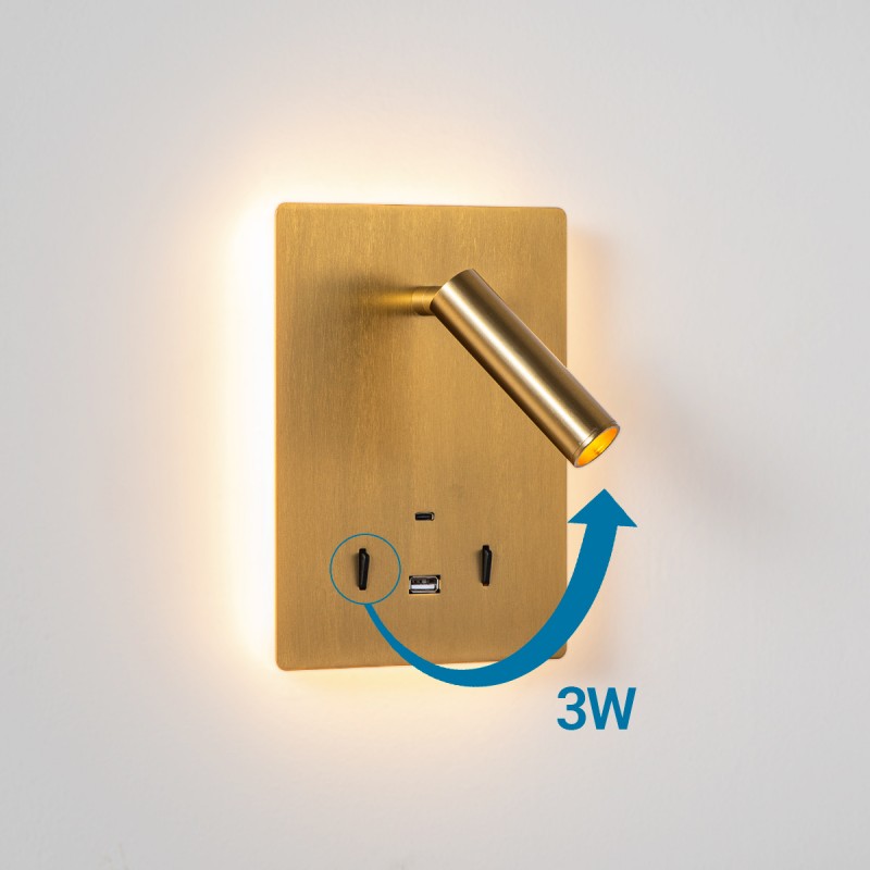 Applique murale "CLAUDI" - 3W + 12W - 2700K - USB+USB-C