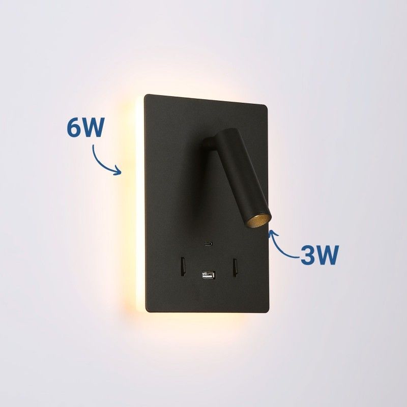 Applique murale "CLAUDI" - 3W + 12W - 2700K - USB+USB-C