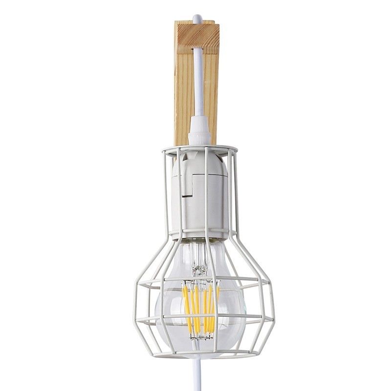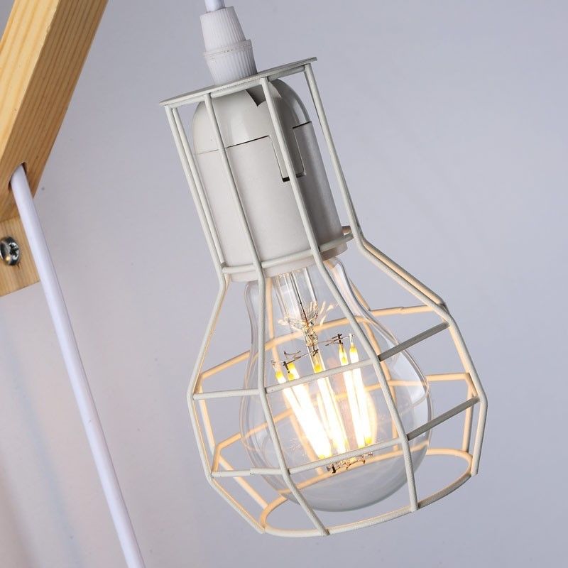 Applique murale rustique en bois qui combine à la perfection le matériau du trépied en bois avec l'aluminium du fil de la cage, offrant une lampe de style vintage, nordique et rustique au style élégant et original.
