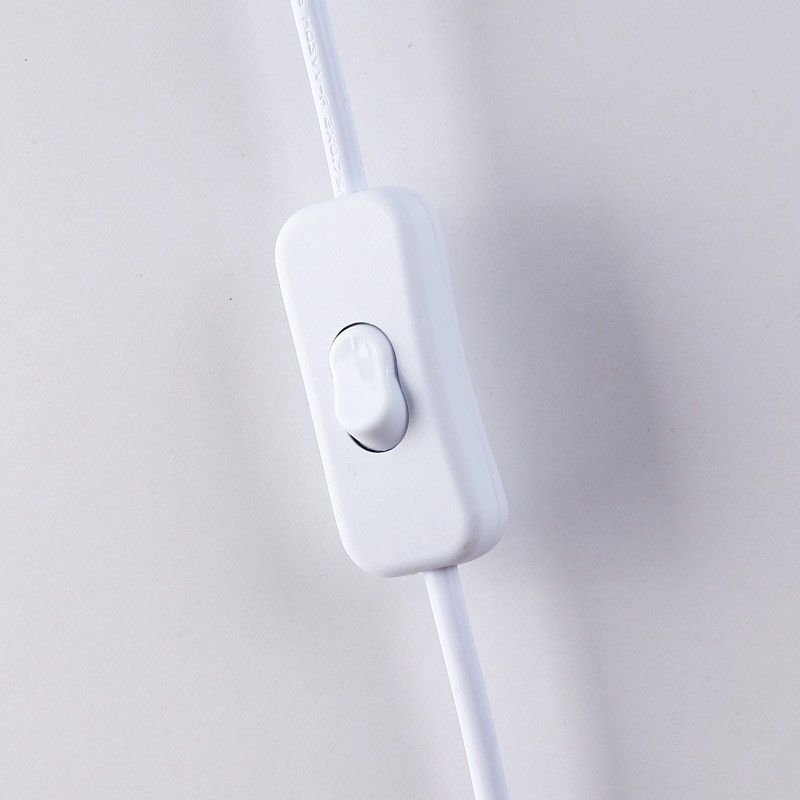 Vous pouvez choisir parmi une multitude de couleurs pour l'abat-jour et le câble : rouge, vert, blanc, gris ou noir. La lampe comprend un câble de 1,5 mètre de long pour éclairer et une partie inférieure avec un choix de finitions de couleur. L'interrupteur inclus dans les finitions grises, vertes et rouges est semi-transparent, dans les autres couleurs il est de la même couleur que l'abat-jour et le câble.