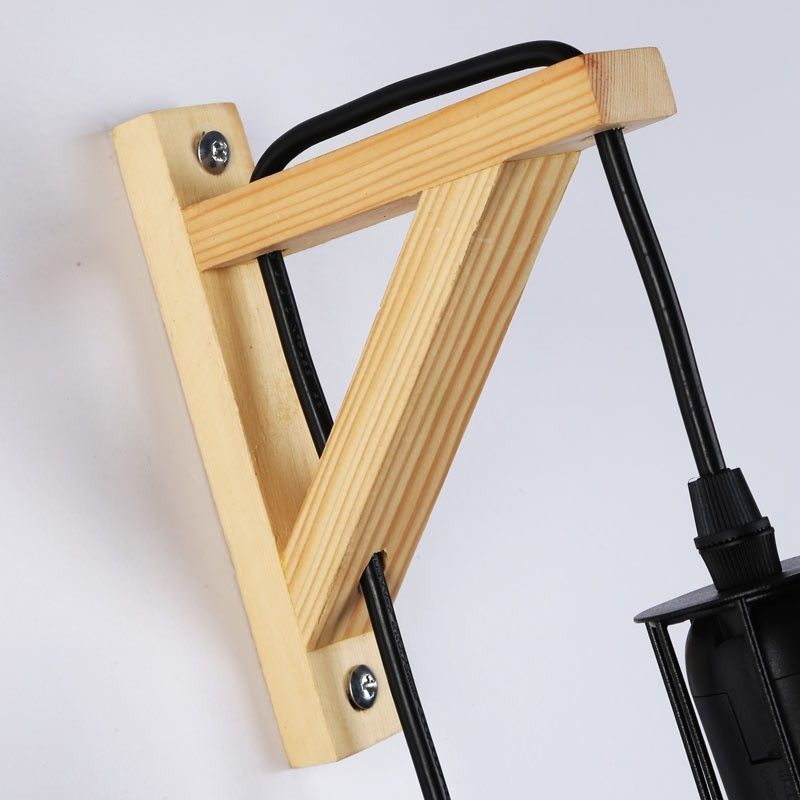 Ces appliques murales d'intérieur sont réalisées avec une poutre en bois de pin en forme de trépied sur laquelle est suspendu un abat-jour en aluminium en forme de cage, où est placée une source de lumière, offrant ainsi une lampe au style unique, original et innovant. Il s'adapte à tous les styles, notamment au style rustique-vintage et aux éléments en bois.