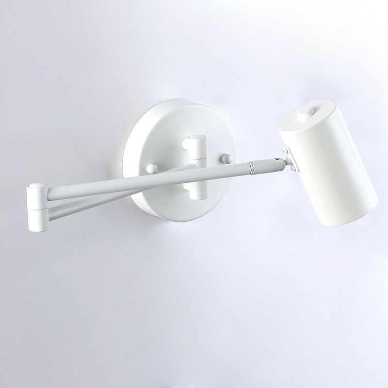 Applique en aluminium au design minimaliste et aux lignes simples et élégantes. Elle est composée d'un abat-jour cylindrique relié à une base circulaire par des bras articulés.