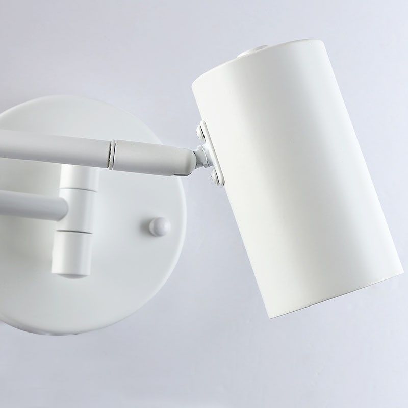 Cette applique en aluminium présente un design minimaliste alliant lignes simples et élégantes. Elle se caractérise par un abat-jour cylindrique relié de manière harmonieuse à une base circulaire grâce à des bras articulés.