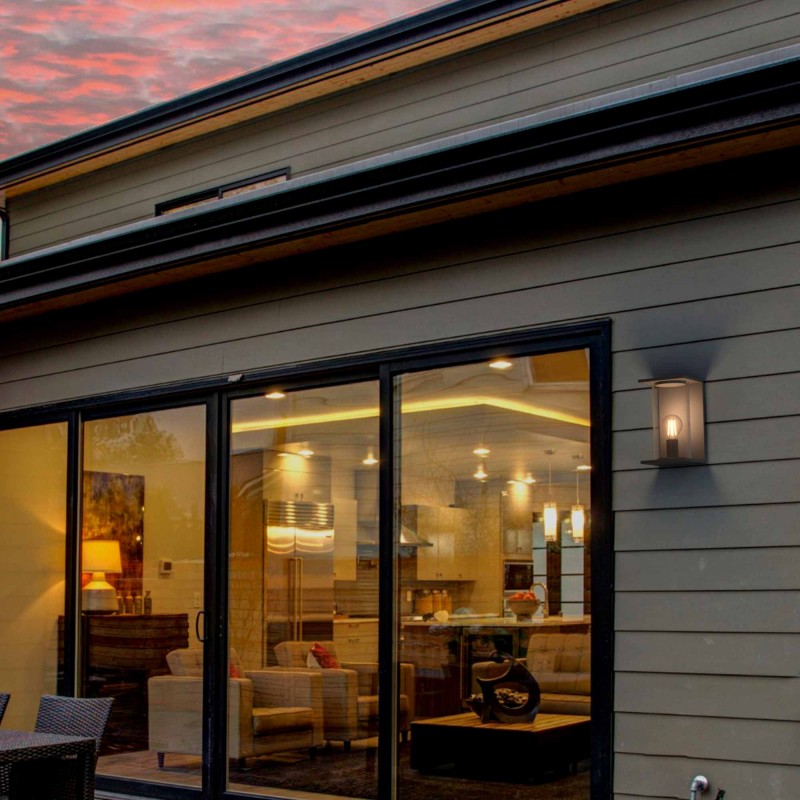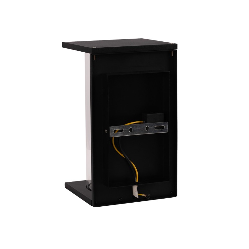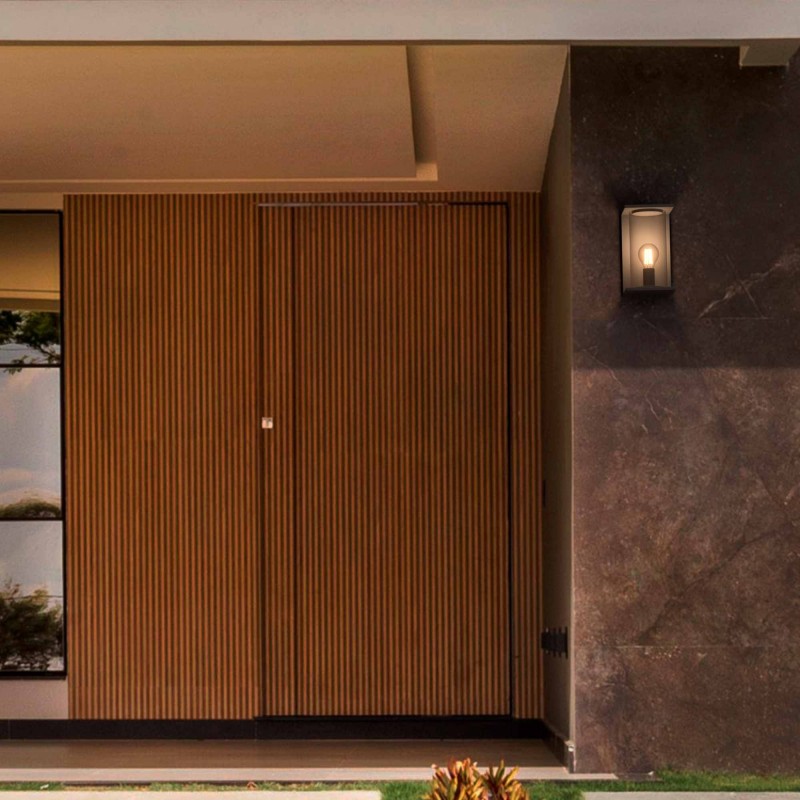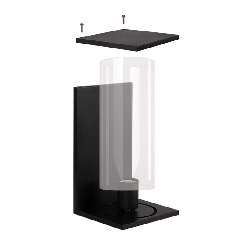 L'applique extérieure "Arzo" associe un élégant corps en aluminium avec une finition noire mate à un diffuseur cylindrique en verre transparent, apportant une touche esthétique à tout environnement.