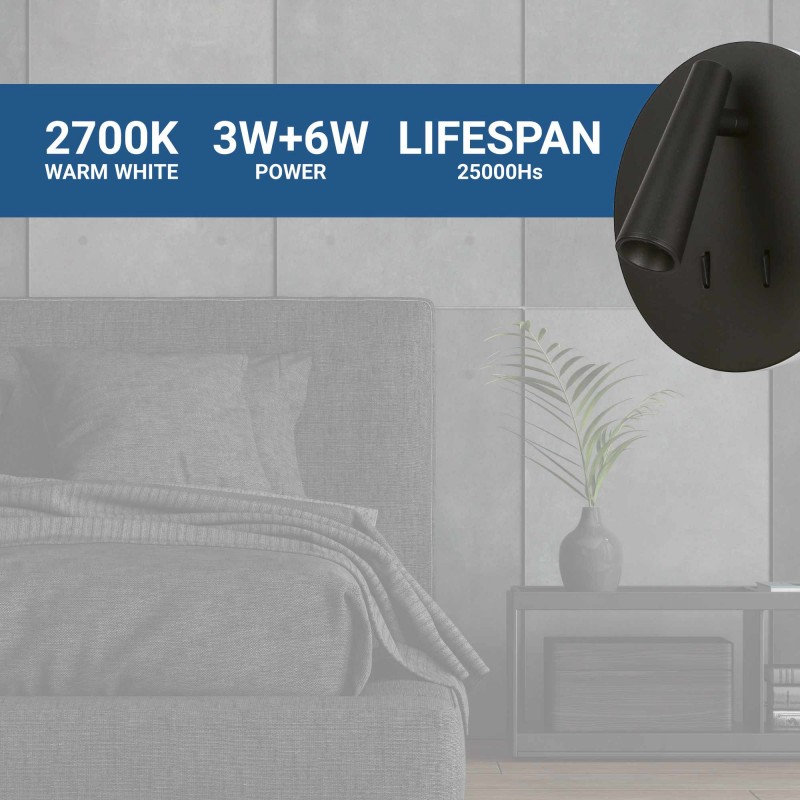 • Éclairage efficace et confortable : son spot LED de 3 W et son rétroéclairage indirect de 6 W (2700 K) créent une atmosphère chaleureuse et agréable dans n'importe quel espace.