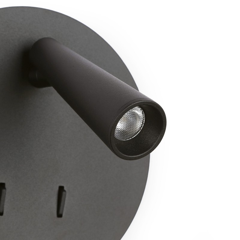 Elle est équipée d'un spot LED de 3W à l'avant et d'une lumière indirecte de 6W à l'arrière, en blanc chaud. Chaque système d'éclairage est contrôlé indépendamment par deux interrupteurs intégrés.