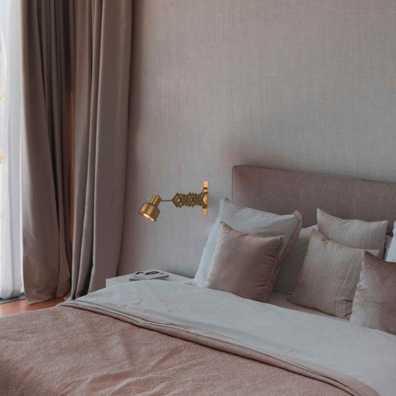 L'applique murale "Roma" offre un bras extensible jusqu'à 48 cm, avec un abat-jour réglable à 300º, offrant une grande polyvalence dans l'orientation de la lumière. Son ressort en forme de ciseaux permet une rétraction minimale de 30 cm.