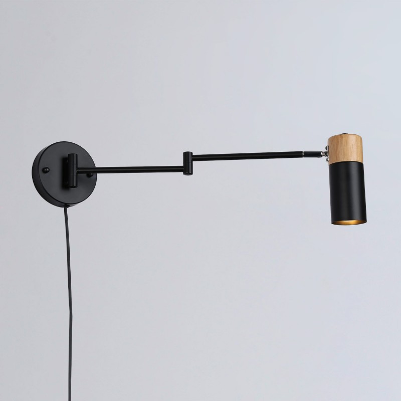 Notre applique murale hybride, combinant l'aluminium et le bois, se distingue par un design minimaliste aux lignes épurées et sophistiquées. Son abat-jour cylindrique est relié à une base circulaire via des bras articulés, offrant une esthétique moderne et fonctionnelle.