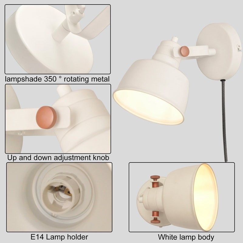 La lampe murale avec prise et interrupteur "Kukka" est une lampe murale de style sacndinave, réglable et au design moderne et original. Avec douille E14 d'une puissance maximale de 60W. Fini en blanc pour les décorations légères et en noir pour un style plus moderne. Idéal pour une installation dans les chambres, les bureaux, les salons, les couloirs et toute pièce intérieure de la maison ou de l'entreprise, avec un degré de protection IP20.