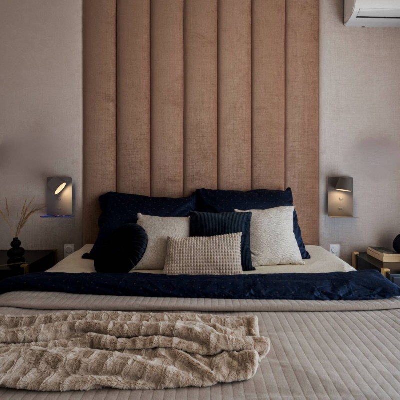 Spécifiquement conçue pour une installation élégante au-dessus des têtes de lit, que ce soit à domicile ou dans des établissements hôteliers, elle offre également une polyvalence d'utilisation dans les environnements professionnels tels que les bureaux, les salles de consultation, ou les espaces de réception.