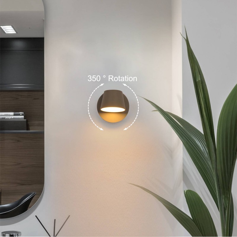 Applique murale sobre et élégante, avec tête rotative permettant d'orienter le faisceau lumineux de sa LED intégrée. L'angle d'ouverture de 120º permet d'éclairer adéquatement :