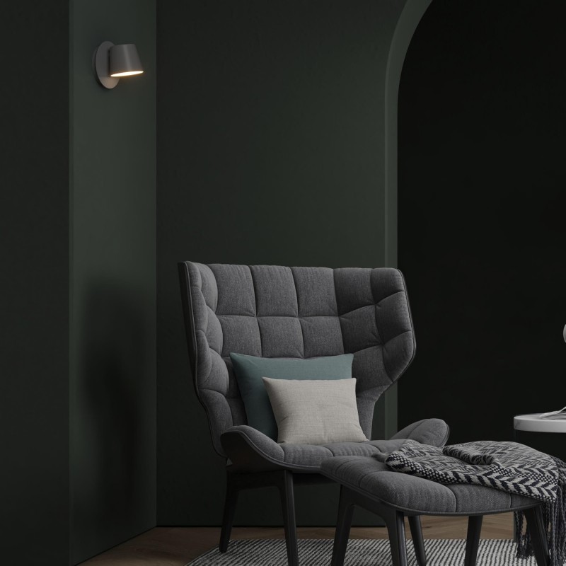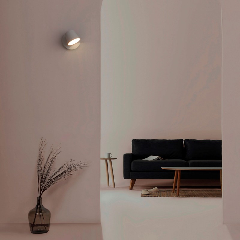 La tête orientable de l'applique KOP intègre une LED consommant 6 W seulement pour une intensité de 520 lumens (lumière chaude, 3000 K) soit l'équivalent d'une halogène de 50 W. Grâce à son design minimaliste d'influence nordique, cette applique métallique à la finition laquée blanc mat se marie avec tous les styles de décoration.