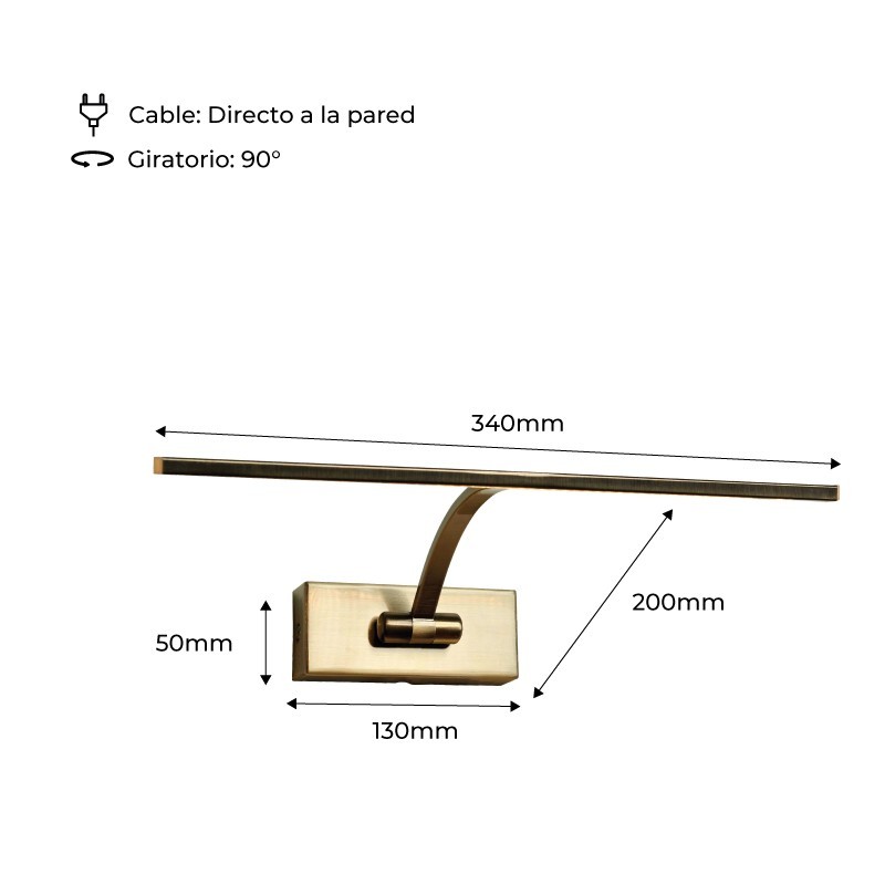 L'éclairage émis par ces appliques pour tableau est brillant et homogène. L'angle d'ouverture du faisceau lumineux est de 120 degrés. Luminaire certifié IP20 à utiliser en intérieur exclusivement. Usage domestique et professionnel (musée, restaurants, hôtels, bureaux, etc.). Tension de 220-240V/CA.