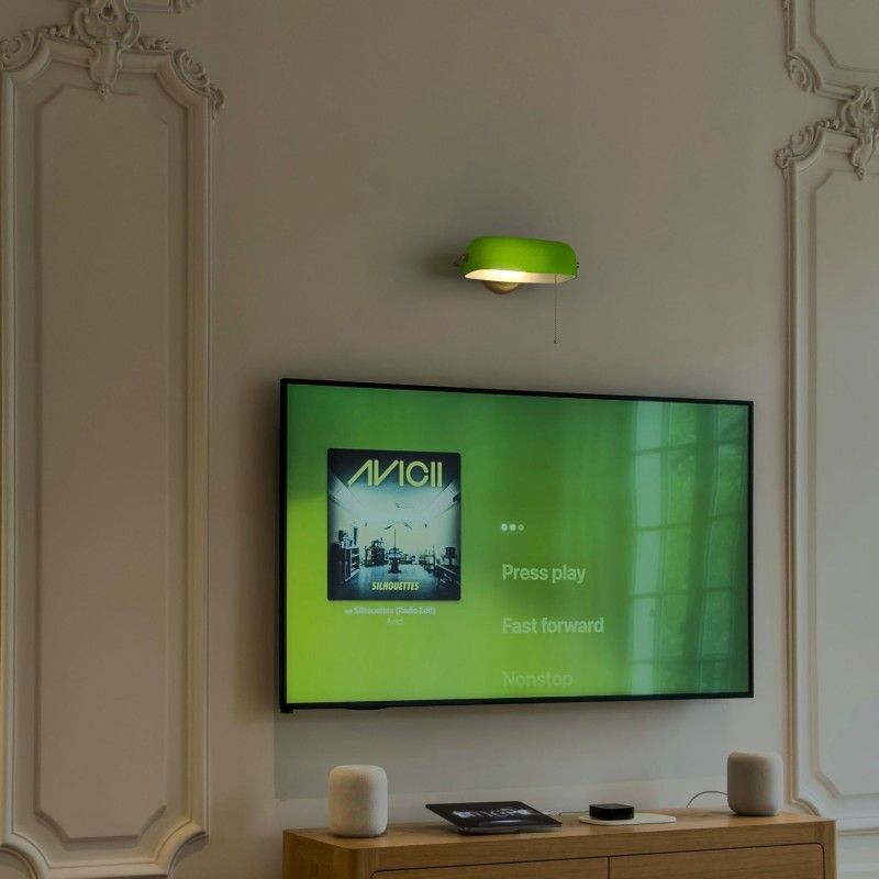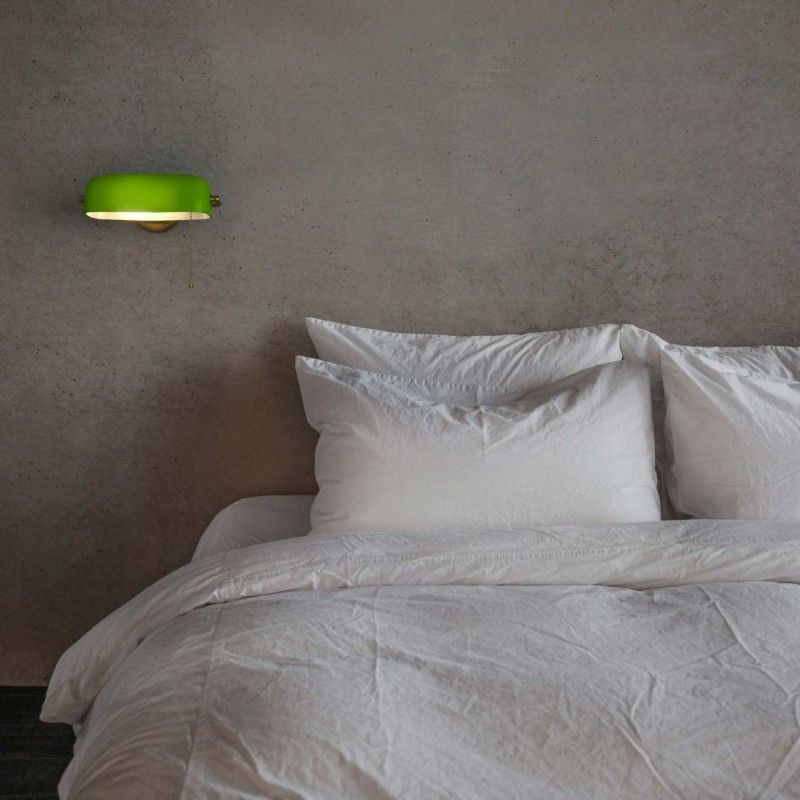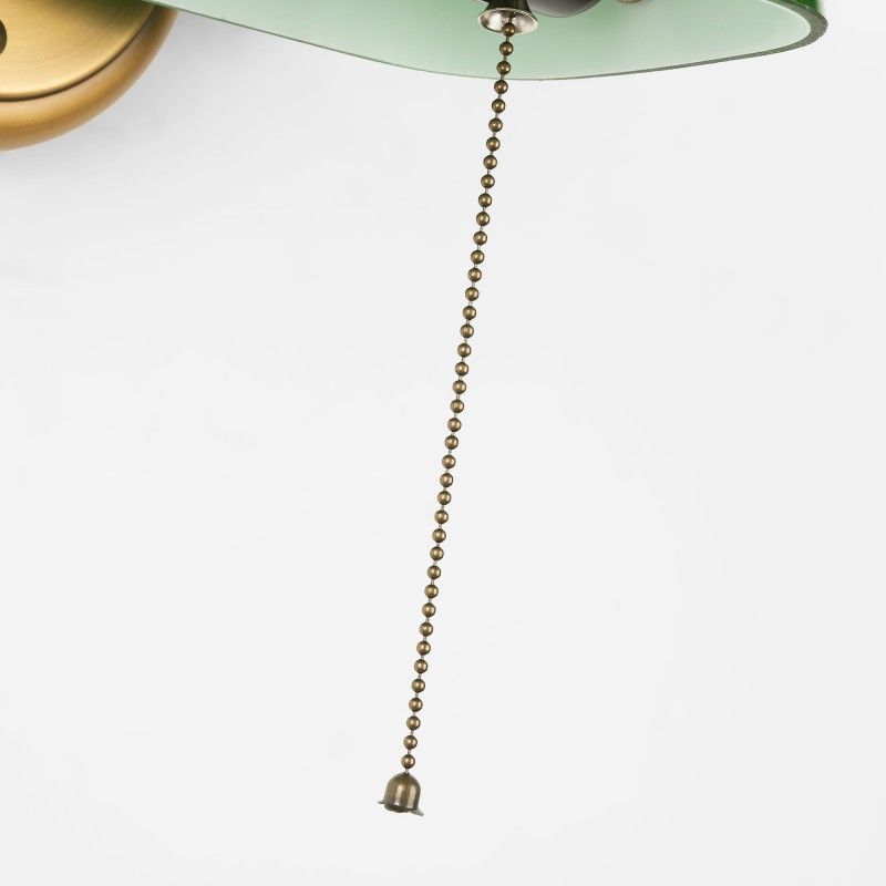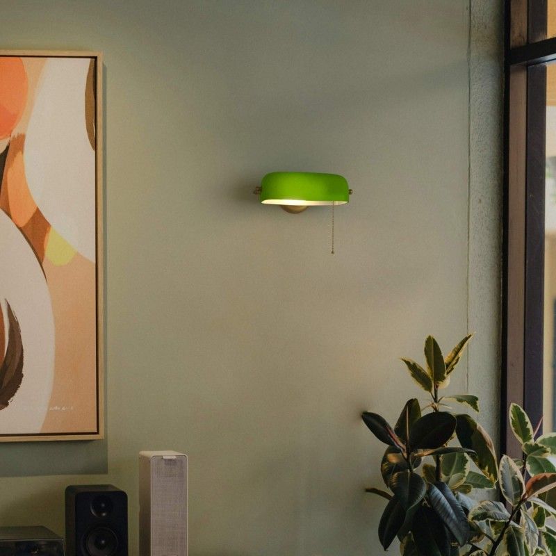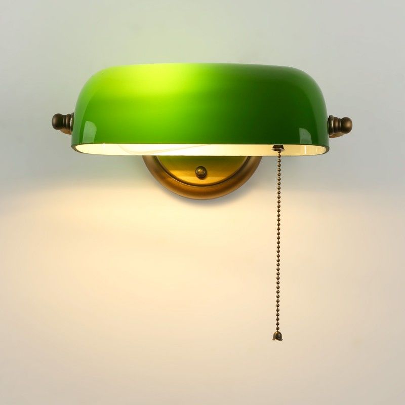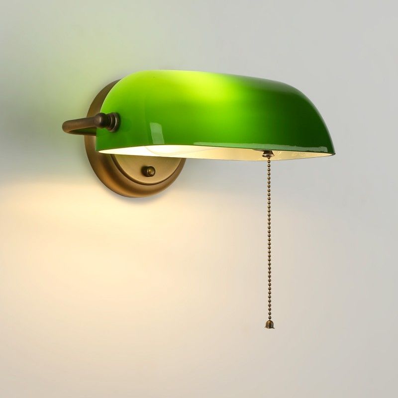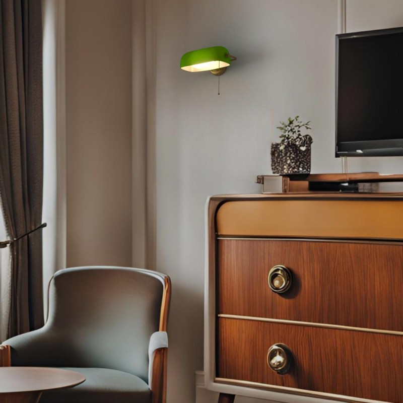 Applique vintage "BANQUERO", avec un abat-jour en verre orientable disponible en vert et blanc et une élégante base en laiton antique.