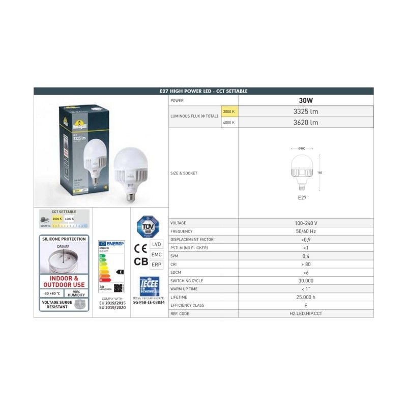 - Système CCT graduable: permet de choisir entre le blanc chaud (3000K) et le blanc neutre (4000K) grâce à un interrupteur intégré à l'ampoule.