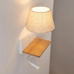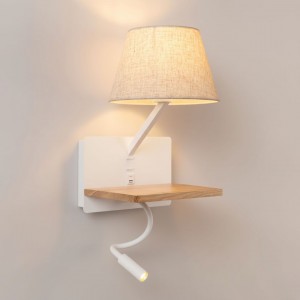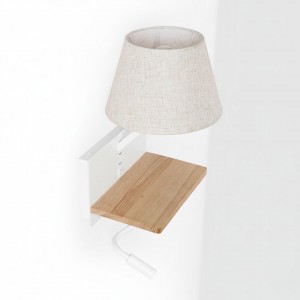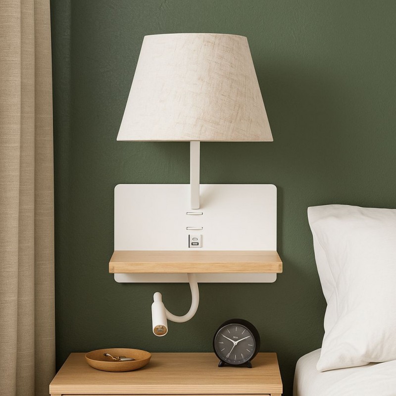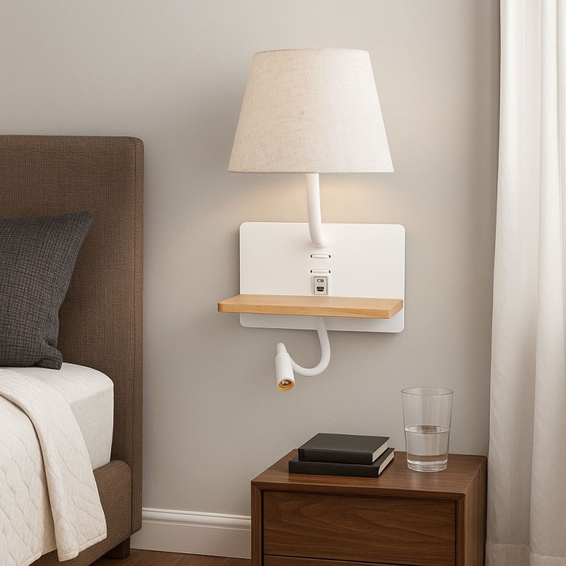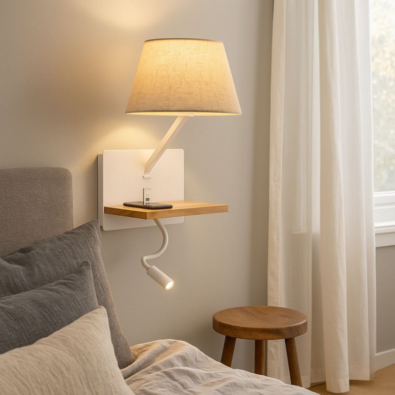 La lampe murale intègre un port USB et un port USB-C, avec une base en bois pour soutenir le téléphone portable, ce qui permet une recharge pratique pendant la nuit.