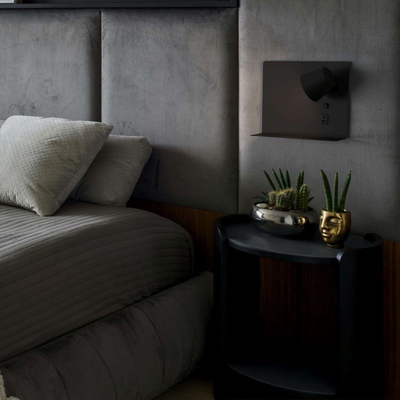 Avec son design de style nordique, cette applique s'intègre facilement dans les environnements modernes, alliant esthétique et solutions pratiques pour l'éclairage et le chargement des appareils.