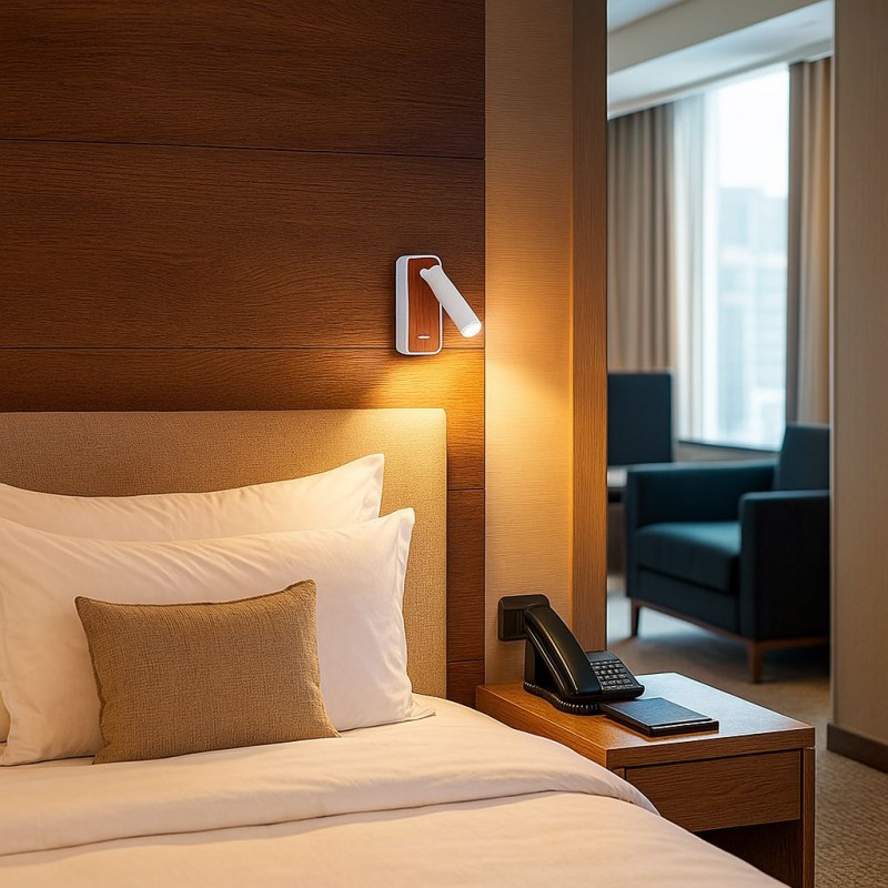 Conçue spécifiquement pour être installée sur les têtes de lit, elle s'intègre parfaitement dans des environnements domestiques ou hôteliers, mais elle peut également trouver sa place dans les bureaux, les cabinets médicaux ou les zones d'accueil.