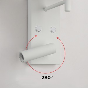 Cette applique se démarque par sa polyvalence, offrant une double fonctionnalité grâce à son abat-jour en tissu qui procure un éclairage général, tandis qu'elle intègre également un luminaire LED réglable spécialement conçu comme lampe de lecture. Les deux luminaires peuvent être allumés ou éteints de manière indépendante grâce à des interrupteurs dédiés.