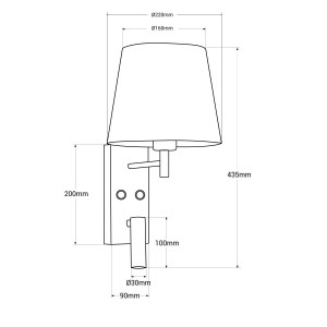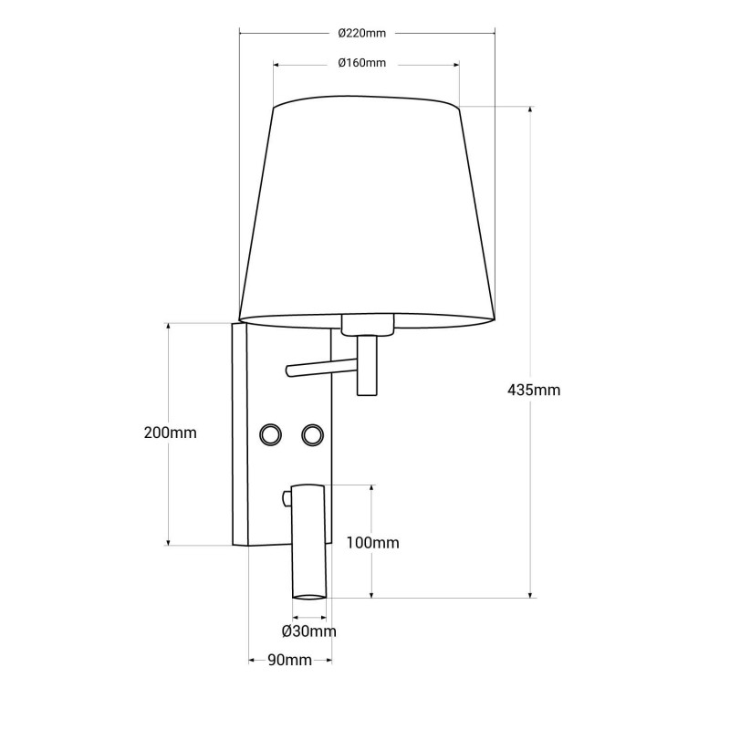 L'abat-jour est équipé d'une douille E27 et peut accueillir une ampoule d'une puissance maximale de 40W (non incluse). La liseuse LED, d'une puissance de 3,4W, émet une lumière blanche chaude (3000K), ajoutant une touche chaleureuse et fonctionnelle à votre espace.