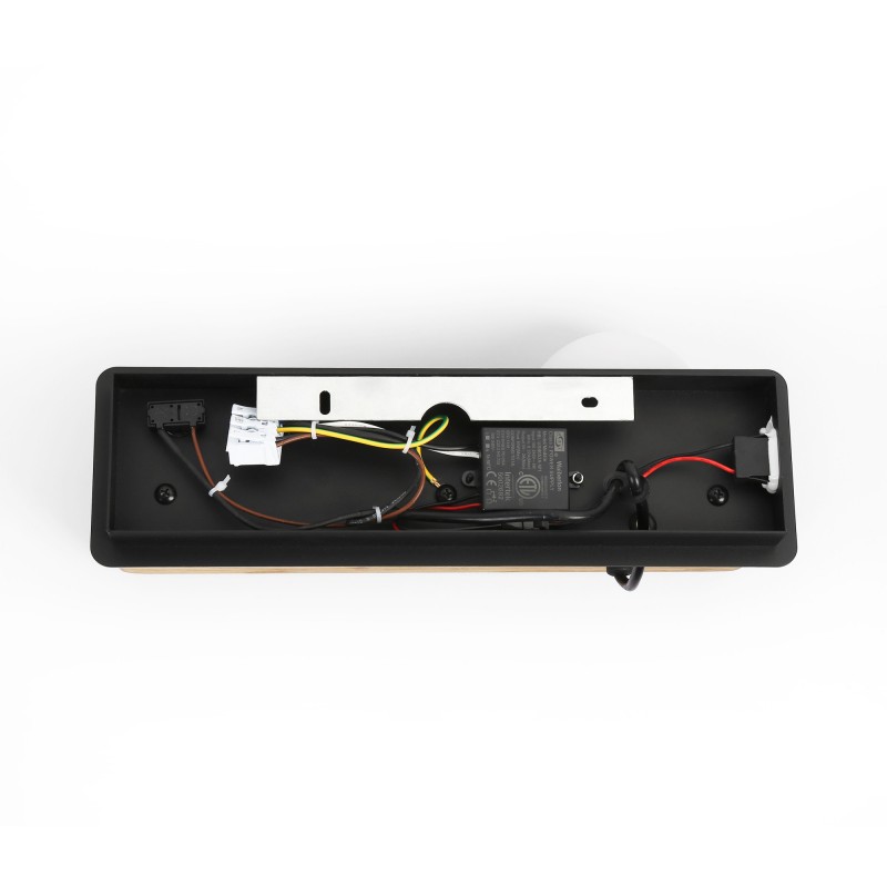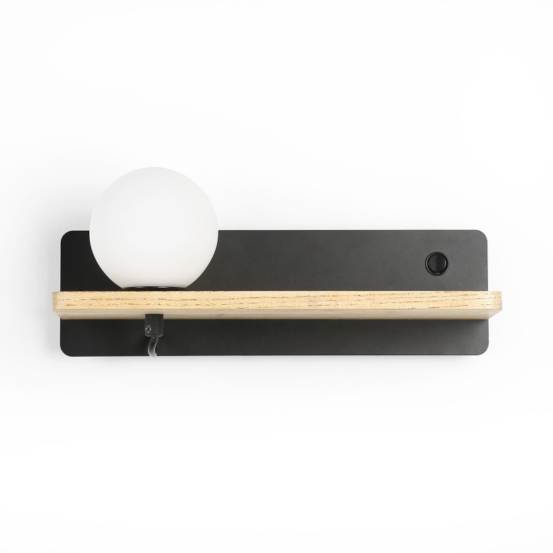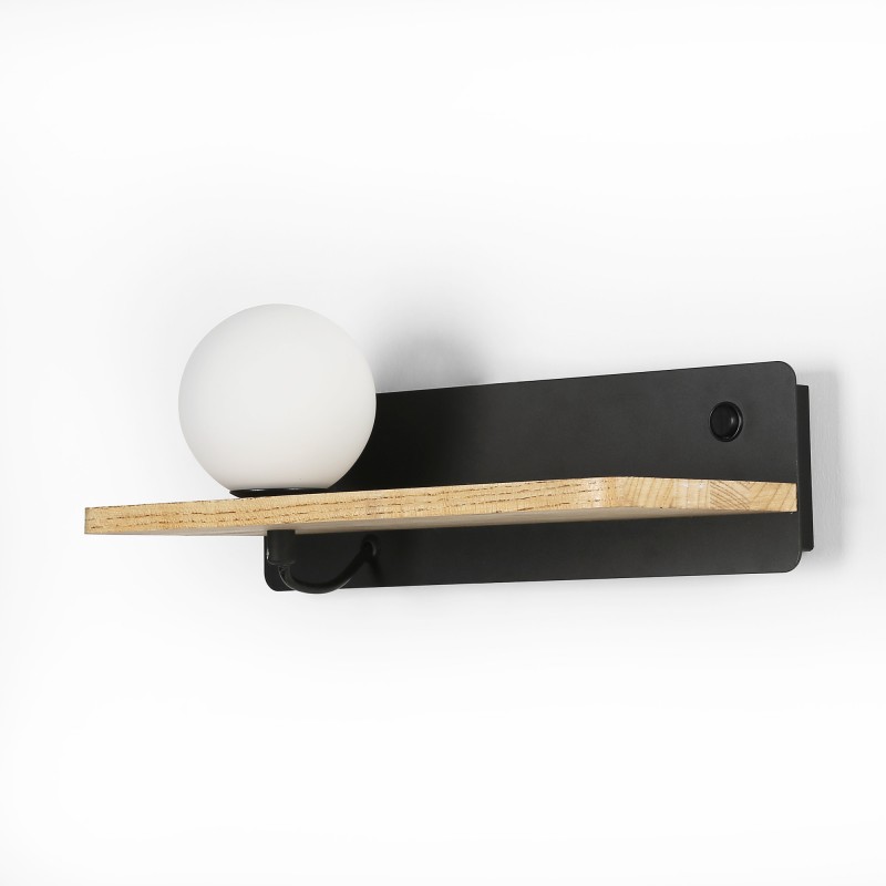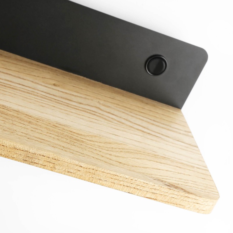 L'applique "Nonna" se distingue par son esthétique contemporaine et sa fonctionnalité avancée, idéale pour s'intégrer dans tout environnement moderne. Elle se compose d'une base en aluminium en finition noire et d'une élégante étagère en bois naturel avec des finitions de haute qualité.
