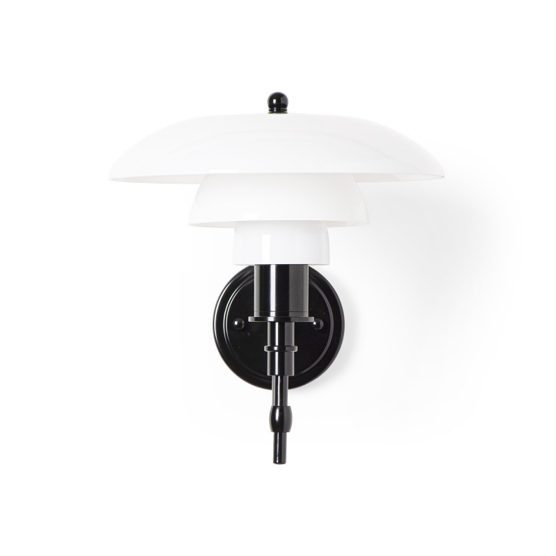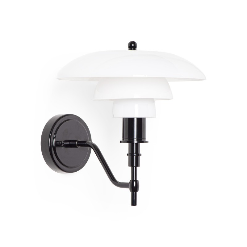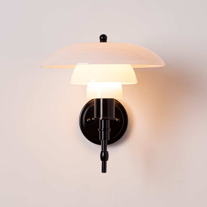 Applique au design raffiné, avec un triple abat-jour en verre opalin et une base en aluminium.
