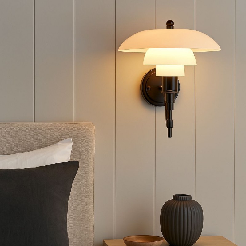 • Éclairage sans éblouissement : Son système d'abat-jour en verre triple opale dirige la lumière vers le bas de manière douce et diffuse, en évitant les reflets.