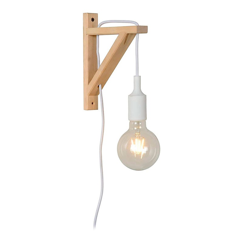 Applique Murale YOJO avec lampe en silicone et câble scandinave, montée sur un support en bois.