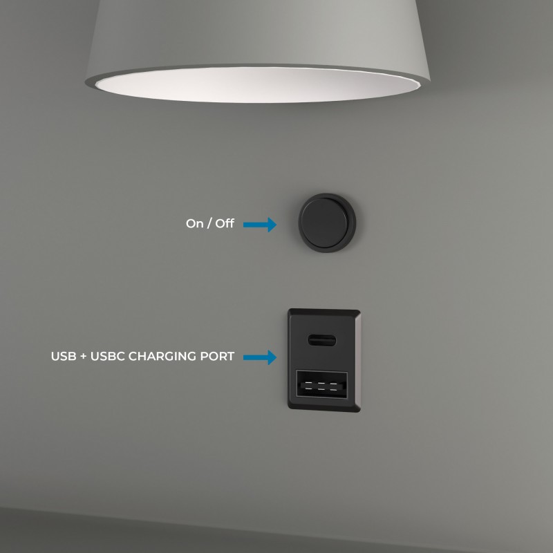 Applique pour la lecture avec port USB + USBC "Baskop" - Disponible en lumière gauche et droite.