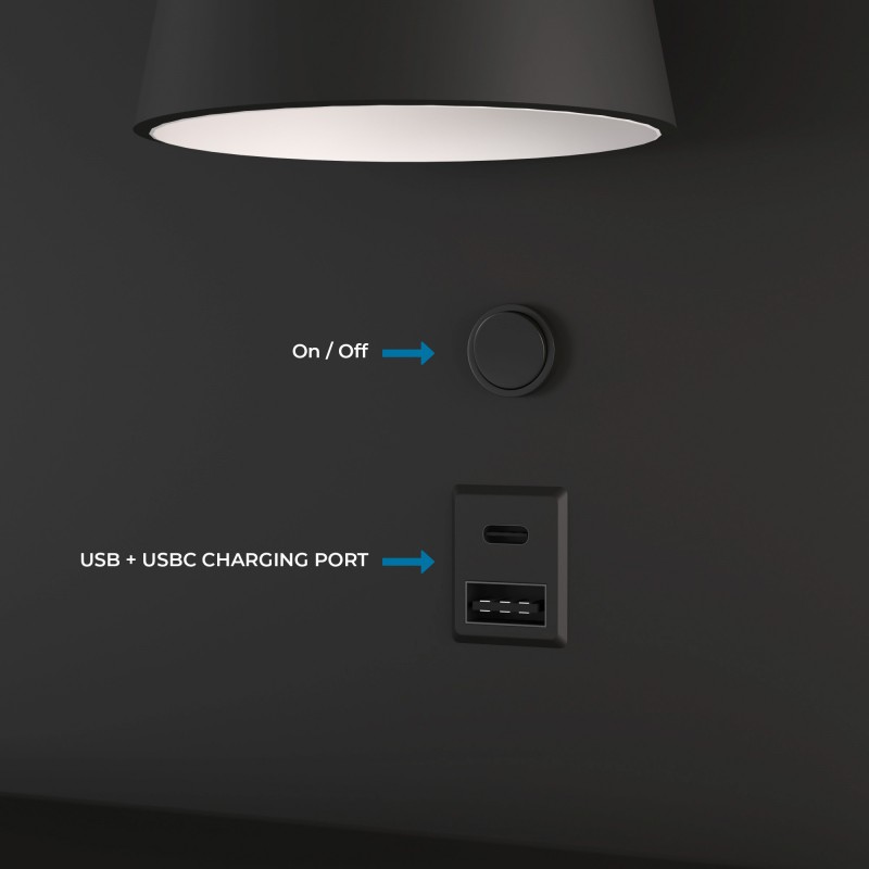 Applique pour la lecture avec port USB + USBC "Baskop" - Disponible en lumière gauche et droite.