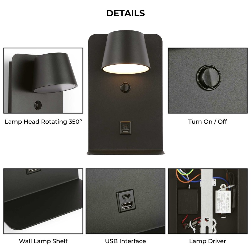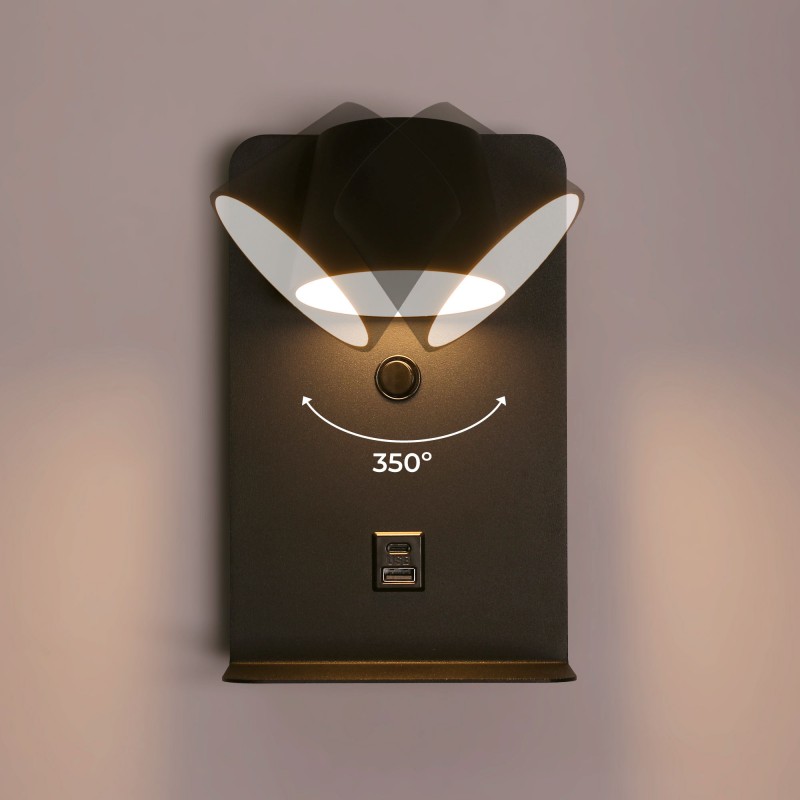 Avec son design de style nordique, cette applique s'intègre facilement dans les environnements modernes, alliant esthétique et solutions pratiques pour l'éclairage et le chargement des appareils.