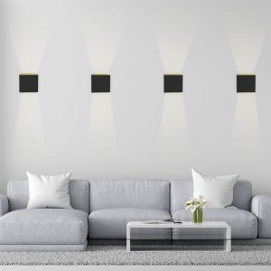Applique murale 6W pour usage extérieur et intérieur. Fabriqué en aluminium, avec un design cubique élégant et minimaliste. Il émet son faisceau lumineux à la fois vers le haut et vers le bas. L'ouverture de la lumière peut être réglée à partir de deux tableaux de commande situés à l'intérieur et pouvant être tournés. L'angle maximal du faisceau est de 100 degrés. L'applique murale est constituée d'une puce COB de haute qualité, qui se caractérise par sa faible consommation d'énergie et est couramment utilisée pour l'éclairage et la décoration intérieur et extérieur.