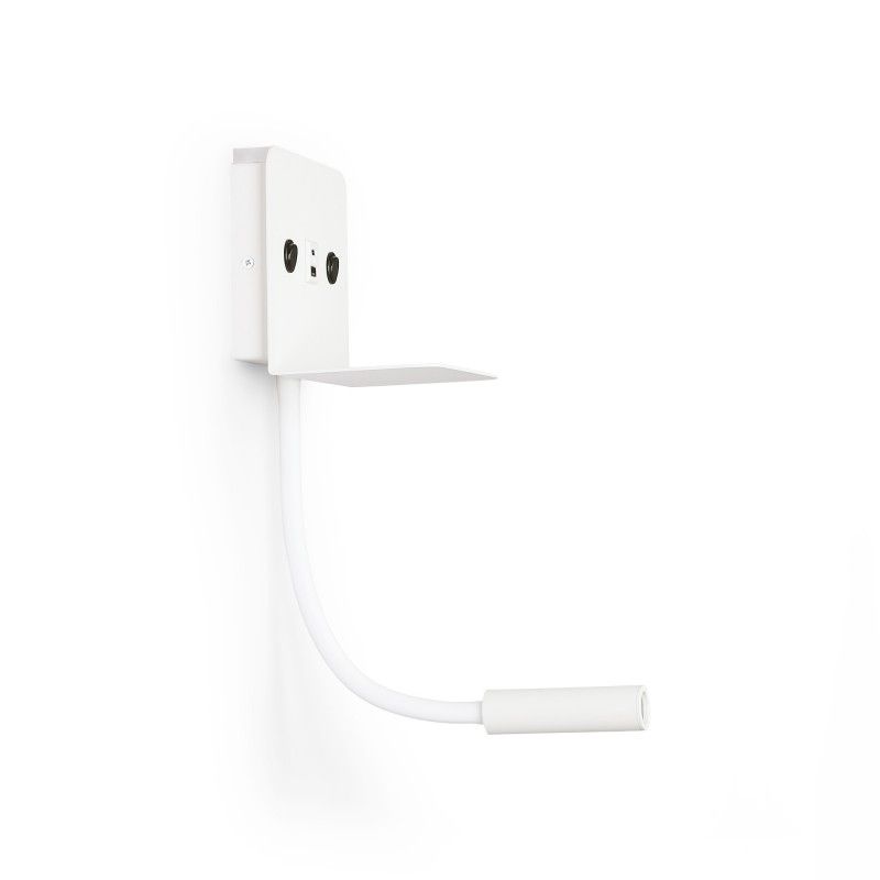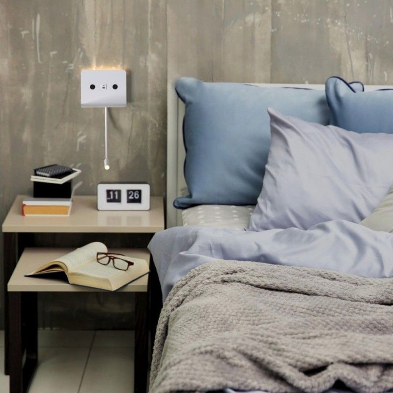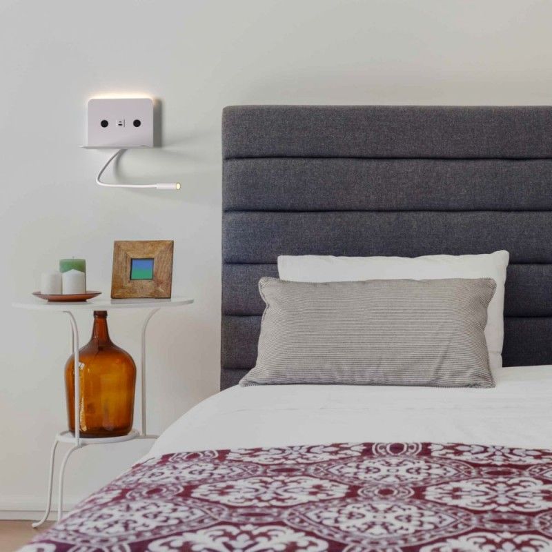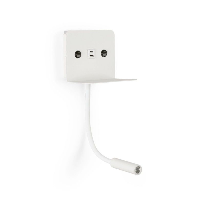 Applique murale de style nordique, conçue pour être installée sur les têtes de lit, avec port USB, USB-C et tablette intégrée.