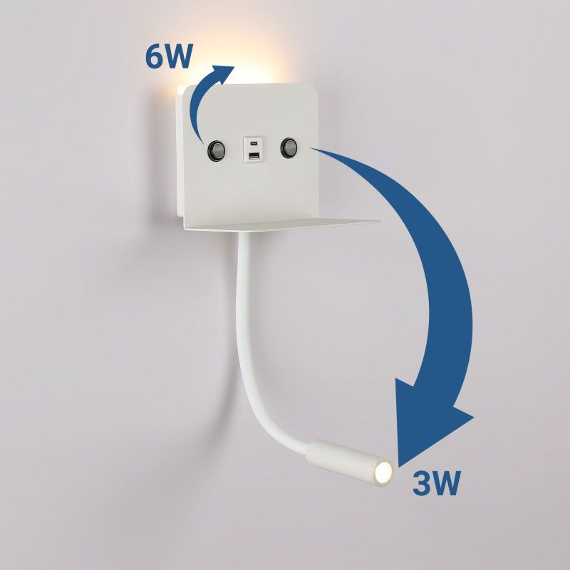 SLANGE Applique de lecture 2" - 3W + 6W - Port USB + USB-C