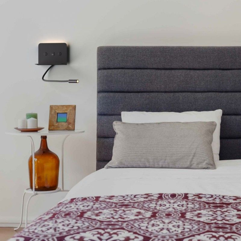 Applique murale de style nordique, conçue pour être installée sur les têtes de lit, avec port USB, USB-C et tablette intégrée.