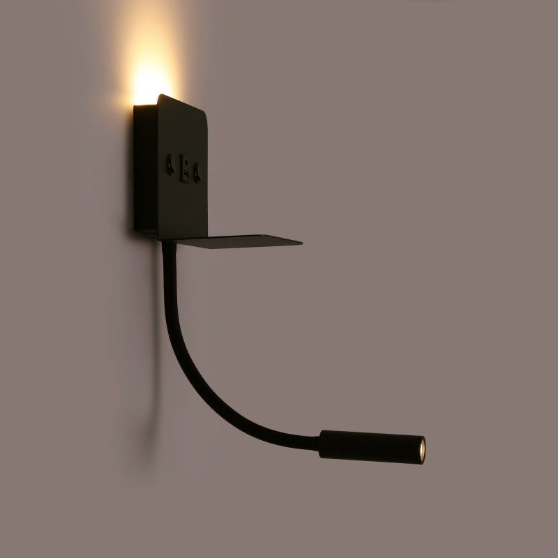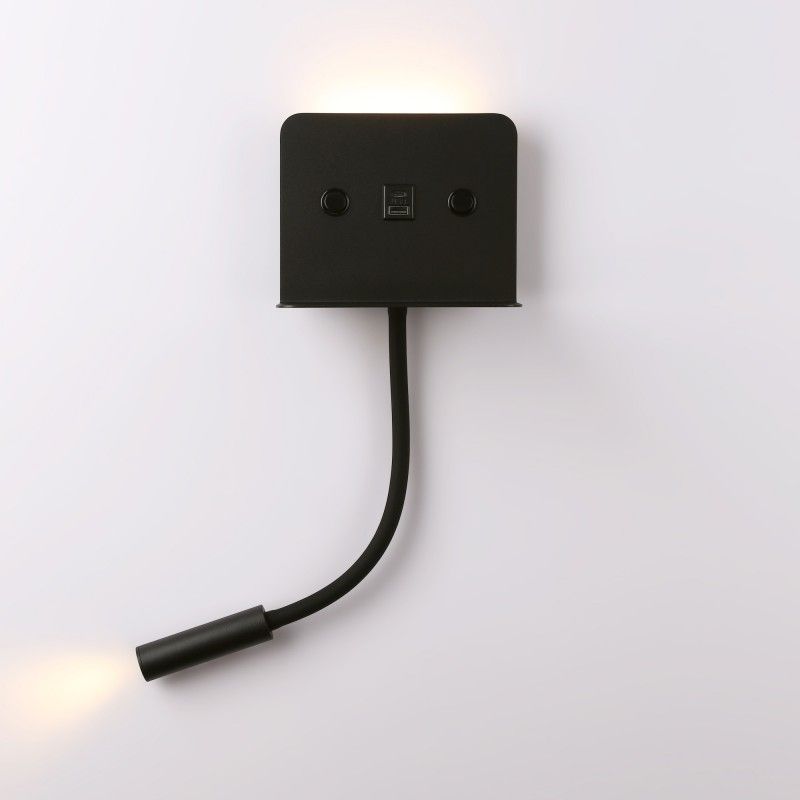Applique de lecture SLANGE 2" : bras pivotant avec lumière auxiliaire