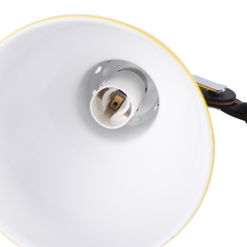 - Format articulé : elle est composée d'une base fixe et d'un bras articulé avec un point de réglage qui permet d'incliner les parties et l'abat-jour. L'abat-jour est orientable à 360°.