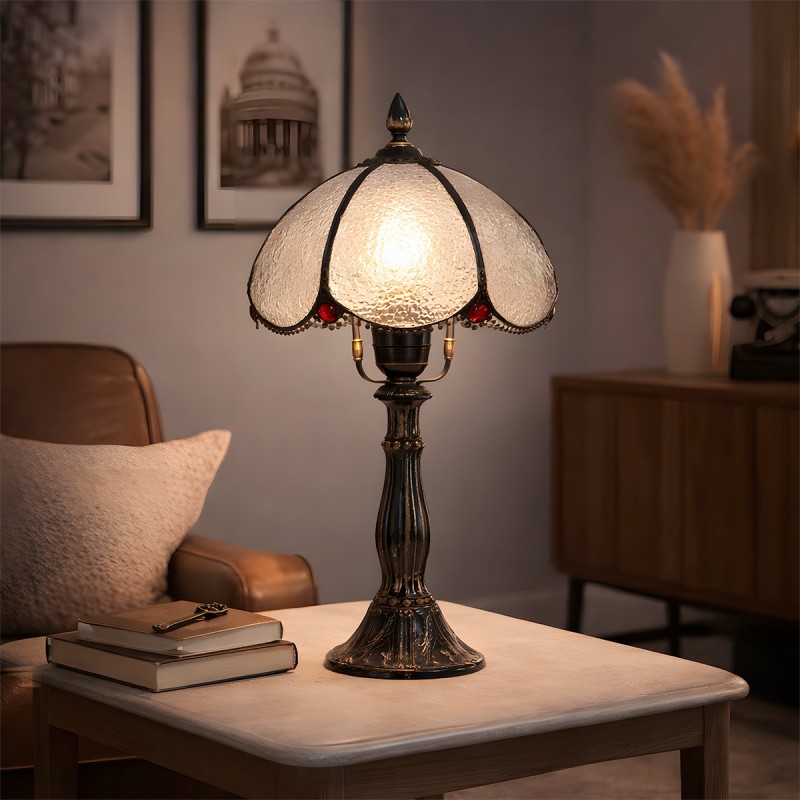 Cette lampe à poser d'inspiration Tiffany offre un charme classique qui rehaussera le caractère et la personnalité de votre intérieur avec élégance.