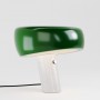 Lampe de table design, avec une élégante combinaison d’un abat-jour en métal et d’une base en marbre blanc.