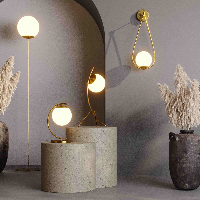 Design sophistiqué : elle est composée d'une élégante structure incurvée en aluminium avec une finition or mat et d'une sphère en verre opale à haute transmission lumineuse. Son design minimaliste et sophistiqué s'adapte parfaitement aux intérieurs modernes, classiques ou rétro, et confère à votre décoration un style unique.