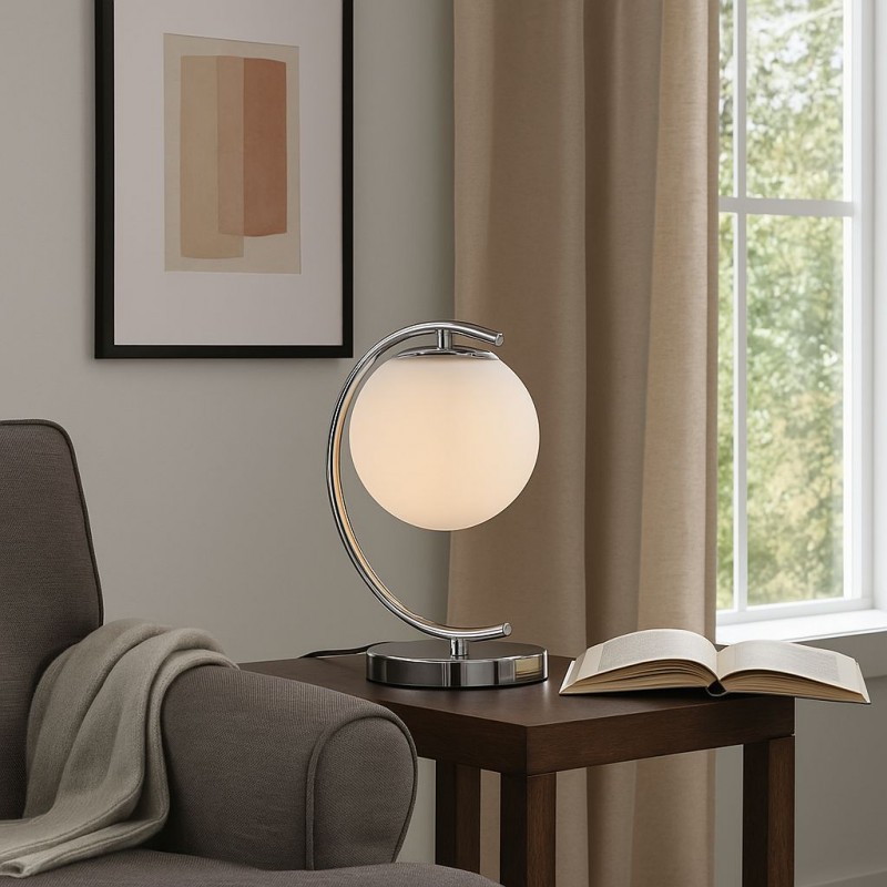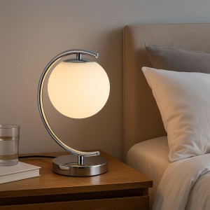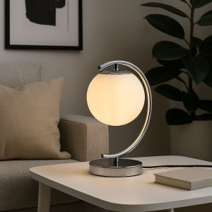 - Design sophistiqué : elle est composée d'une élégante structure incurvée en aluminium, finition or mat, et d'une sphère en verre opale à haute transmission lumineuse.