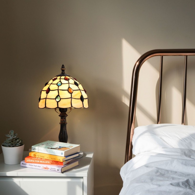 Cette lampe de table d'inspiration Tiffany offre un charme classique qui rehaussera le caractère et la personnalité de votre intérieur avec élégance.