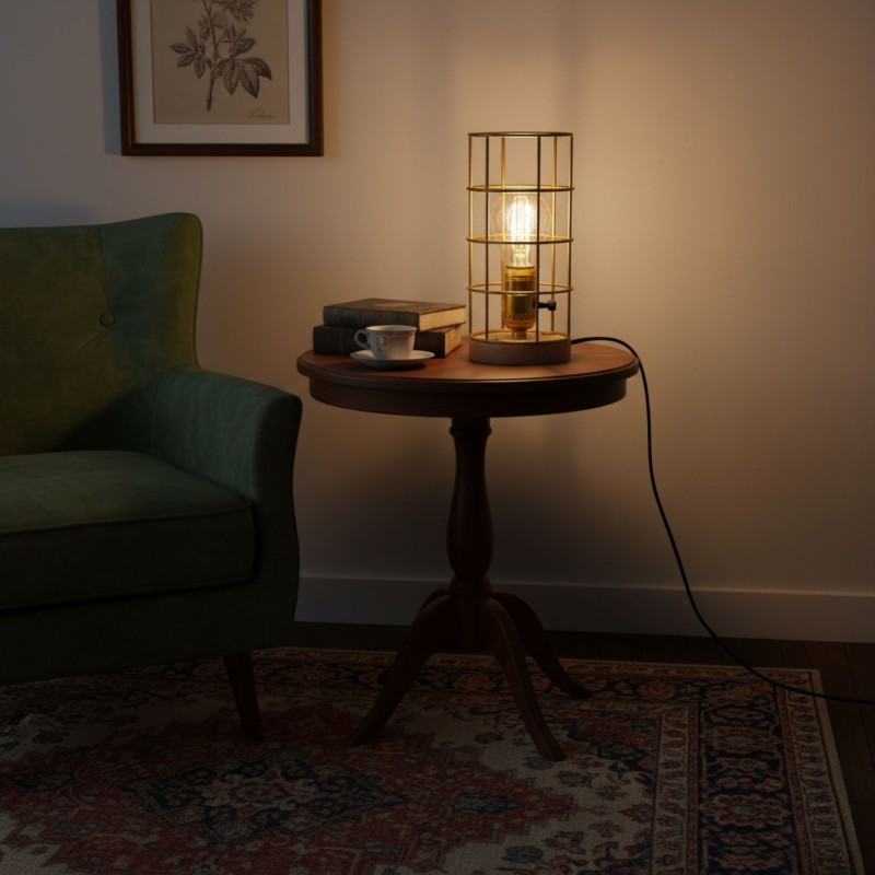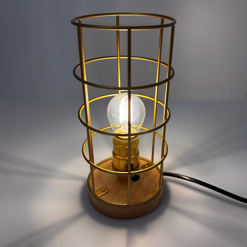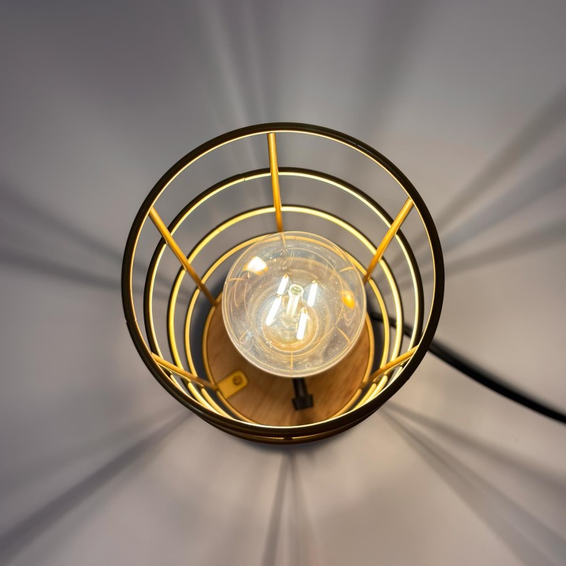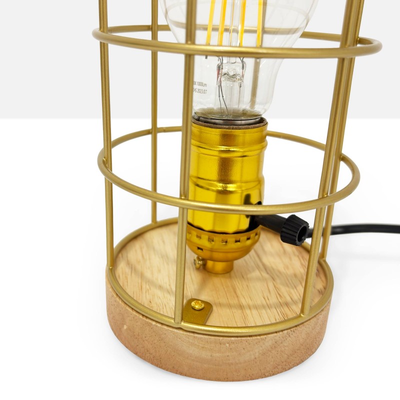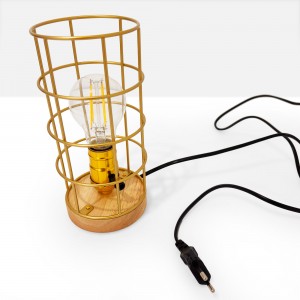 Lampe « GREGOR » en métal et bois au style industriel et vintage . Son design élégant associe une base en bois à une cage métallique noire, blanche ou dorée, selon votre choix. Cette lampe deviendra la lampe décorative idéale pour tout intérieur, qu'il soit domestique ou professionnel . Elle peut servir de lampe de table, de bureau ou de liseuse sur une table d'appoint ou un bureau, dans une chambre, un bureau, une table de restaurant, etc. Interrupteur marche/arrêt sur le câble et prise. Douille pour ampoules E27 , puissance maximale 60 W. Ampoule non incluse.