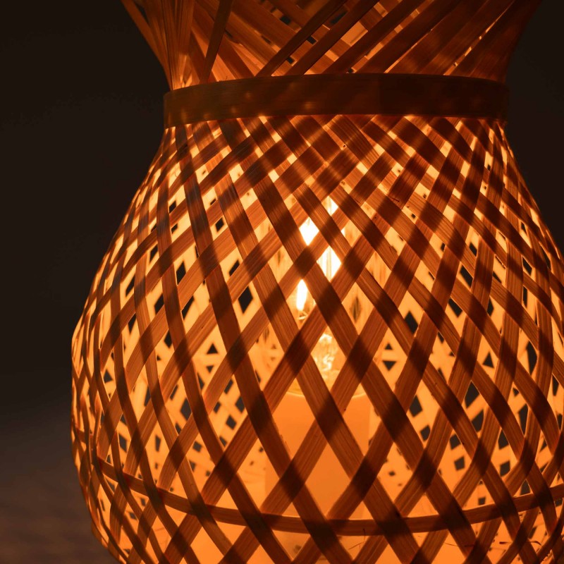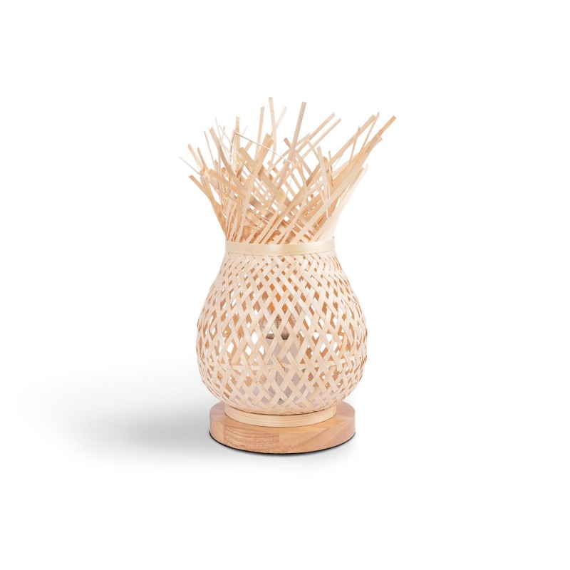 La lampe de table accepte une puissance maximale de 60W et des dimensions de Ø300mm de largeur et 350mm de hauteur. Avec un poids léger et un câble avec un interrupteur pour allumer la lampe quand vous voulez. Le matériau de cette lampe provient du rotin, une variété de palmier dont les tiges ressemblent à celles du bambou. Matériau résistant à l'oxydation et à la corrosion.