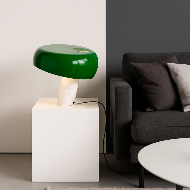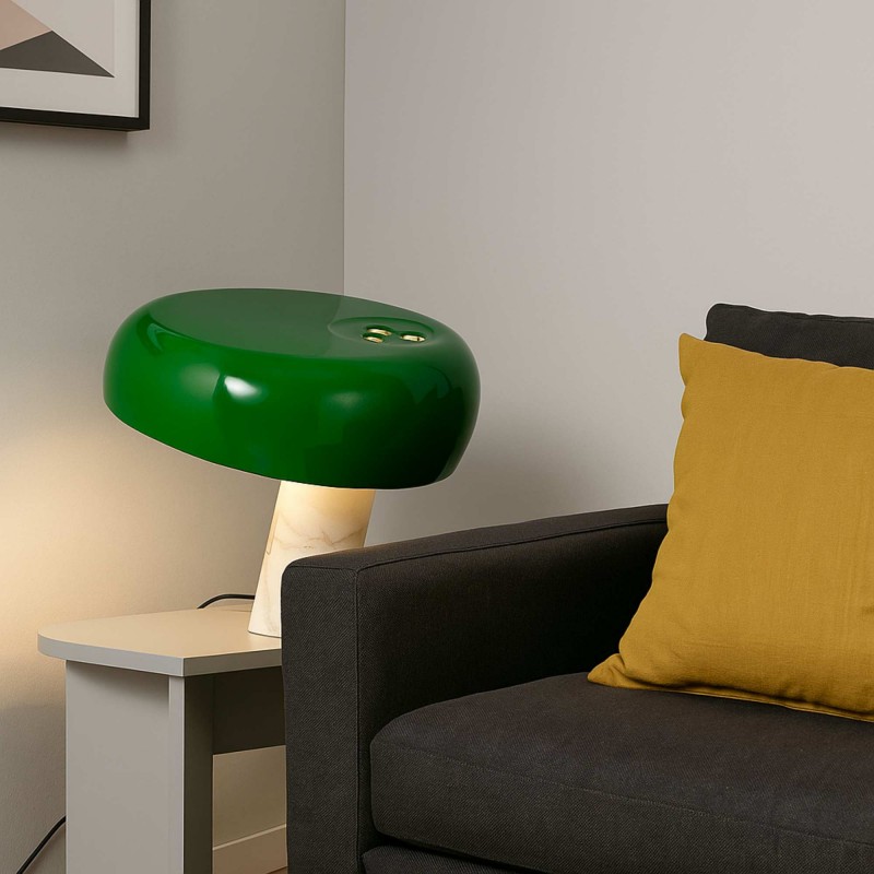 • Matériaux haut de gamme : Abat-jour en métal laqué, diffuseur en verre et socle en marbre blanc pour une durabilité et une élégance exceptionnelles.