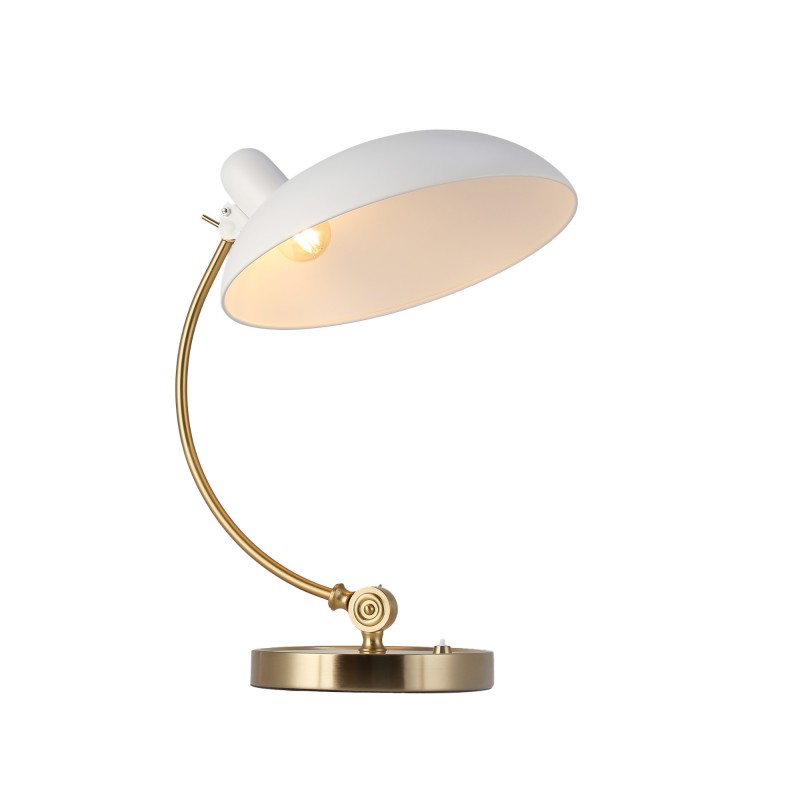 Fabriquée en aluminium de haute qualité, elle dispose d’une élégante structure dorée et d’un abat-jour disponible en finition blanche ou noire.