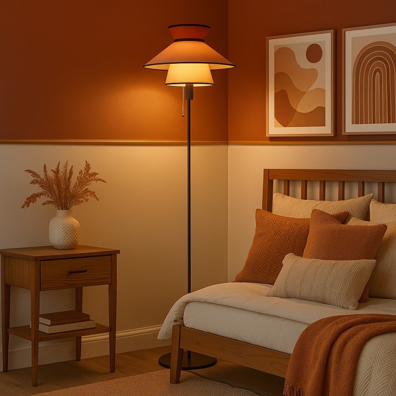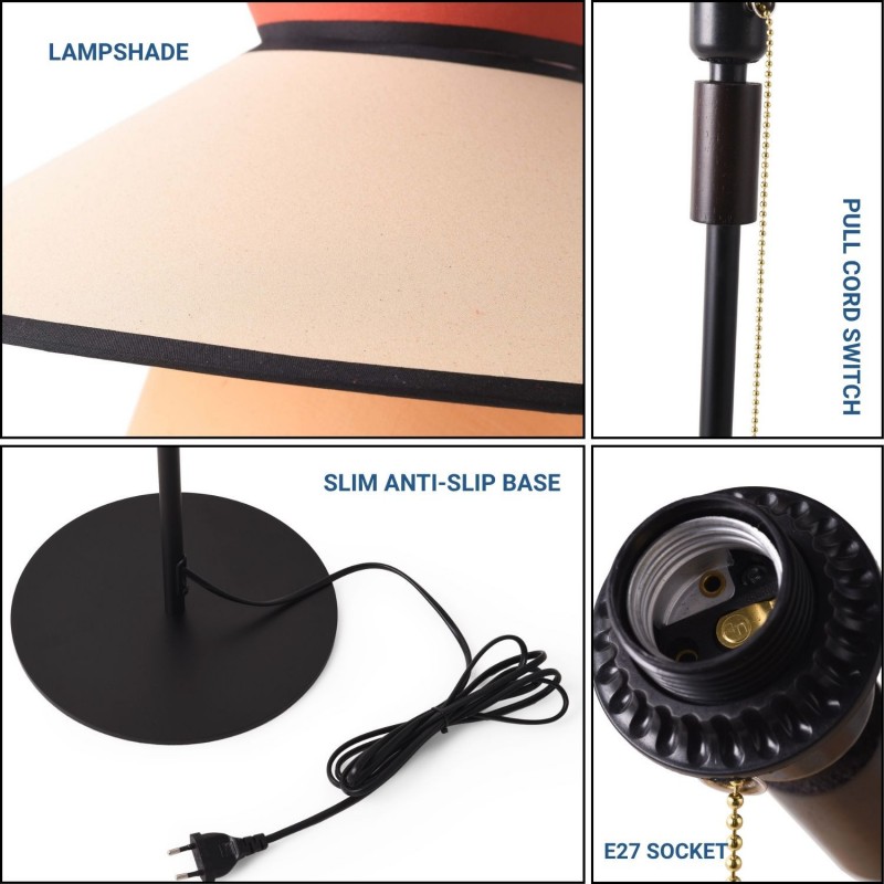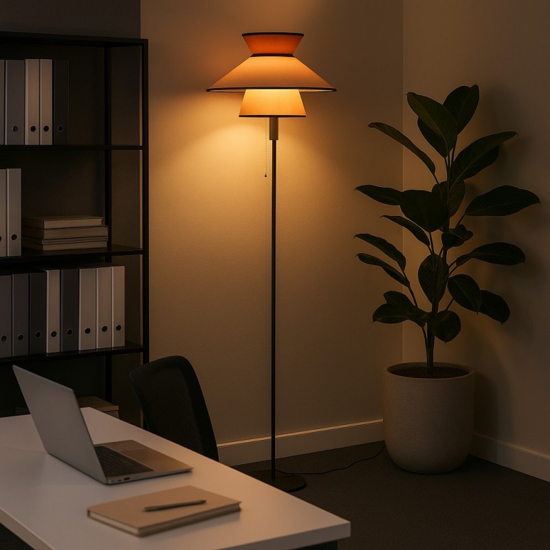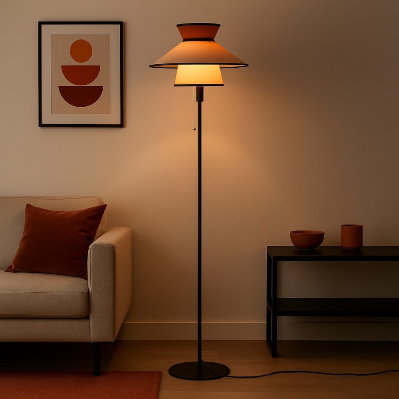 - Lumière douce et enveloppante : L'abat-jour en textile filtre la lumière en créant une atmosphère relaxante, idéale pour les espaces de détente ou de lecture.