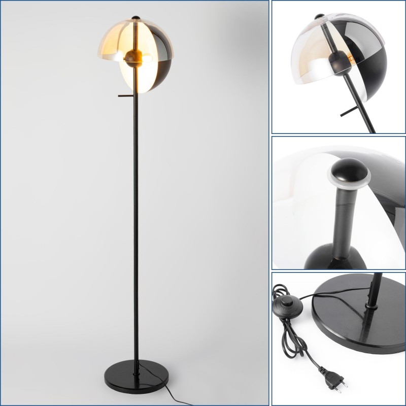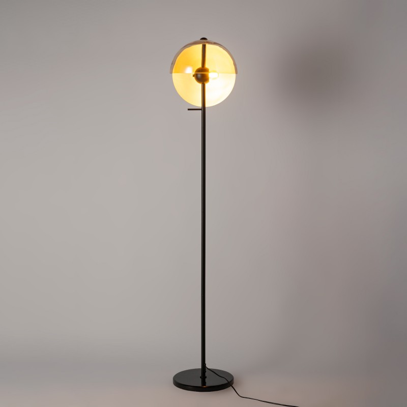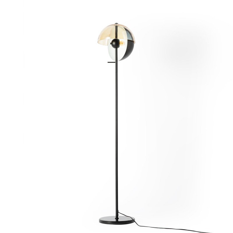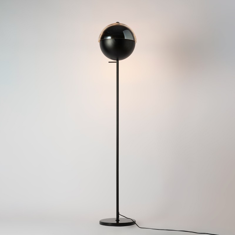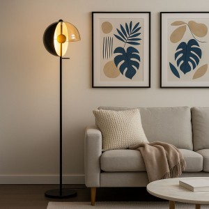 - Design sculptural : l'abat-jour semi-circulaire allie un extérieur noir à un intérieur doré, ce qui crée un contraste. Sa structure haute et élancée repose sur un solide socle en marbre.